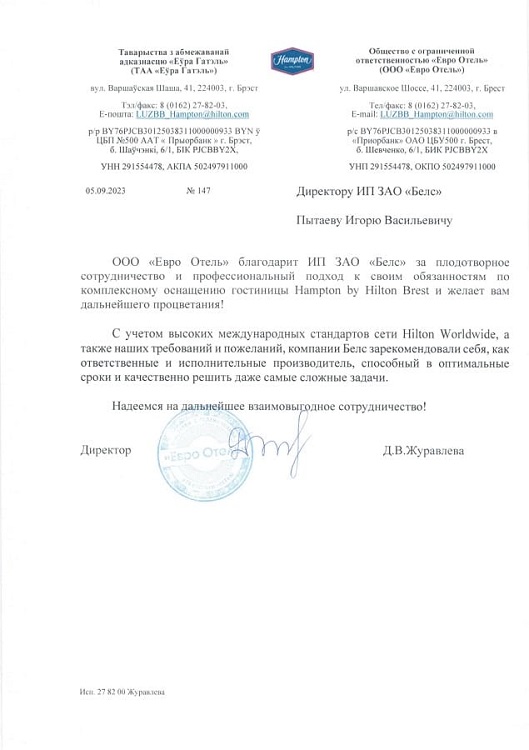 Открывали новый офис в г. Бресте, срочно надо было оборудовать рабочие места сотрудников, обратились в вашу компанию и остались довольны оперативностью доставки и качеством продукции! Сотрудники компании предложили и подобрали кресла из того, что имелось на складе и нам не пришлось ждать изготовления. Планируем и в будущем покупать у вас!